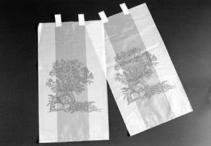 Product Description: Disposable bags are made of white opaque polyethylene with blue floral print. Two tapes allow adherence to any surface. Bags measure 7” x 11”.
