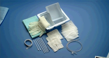 Product Description: Each kit contains: 1 Plastic Tray w/removable basin, 1 Pair of Gloves, 3 Tracheostomy Dressings, 2 Polylined Towel/Drapes, 4 Gauze Dressings, 4” x 4”, 4 Pipe Cleaners, 2 Cotton-Tipped Applicators, 1 Cleaning Brush, 1 Twill Tape, 1 14 Fr Catheter.