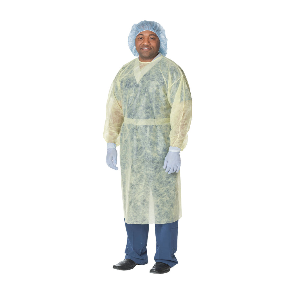 Isolation Gown, Lightweight, with Ties, Spunbond Polypropylene, Yellow, Universal Size, 10/pk, 10 pk/cs (Continental US Only)