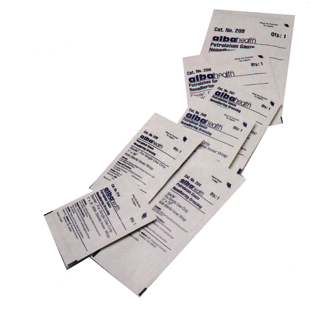 Product Description: Clings and conforms to all body contours without sticking to wound. Provides soothing non-adherent protection with more convenience and less mess. Non-toxic, non-sensitive and non-irritating. An oil-resistant paper wrap folded over the dressing protects it within the peel-open foil-lined pouch and greatly simplifies handling. The dressing is easily taken out of its package without sticking or pad distortion. The folded edges of the inner wrap pull neatly away from the dressing with minimum adherence. The dressings are useful as an initial layer in surgical dressings and on skin graft sites, for soothing treatment of first degree burns and abrasions, and as wound packing.