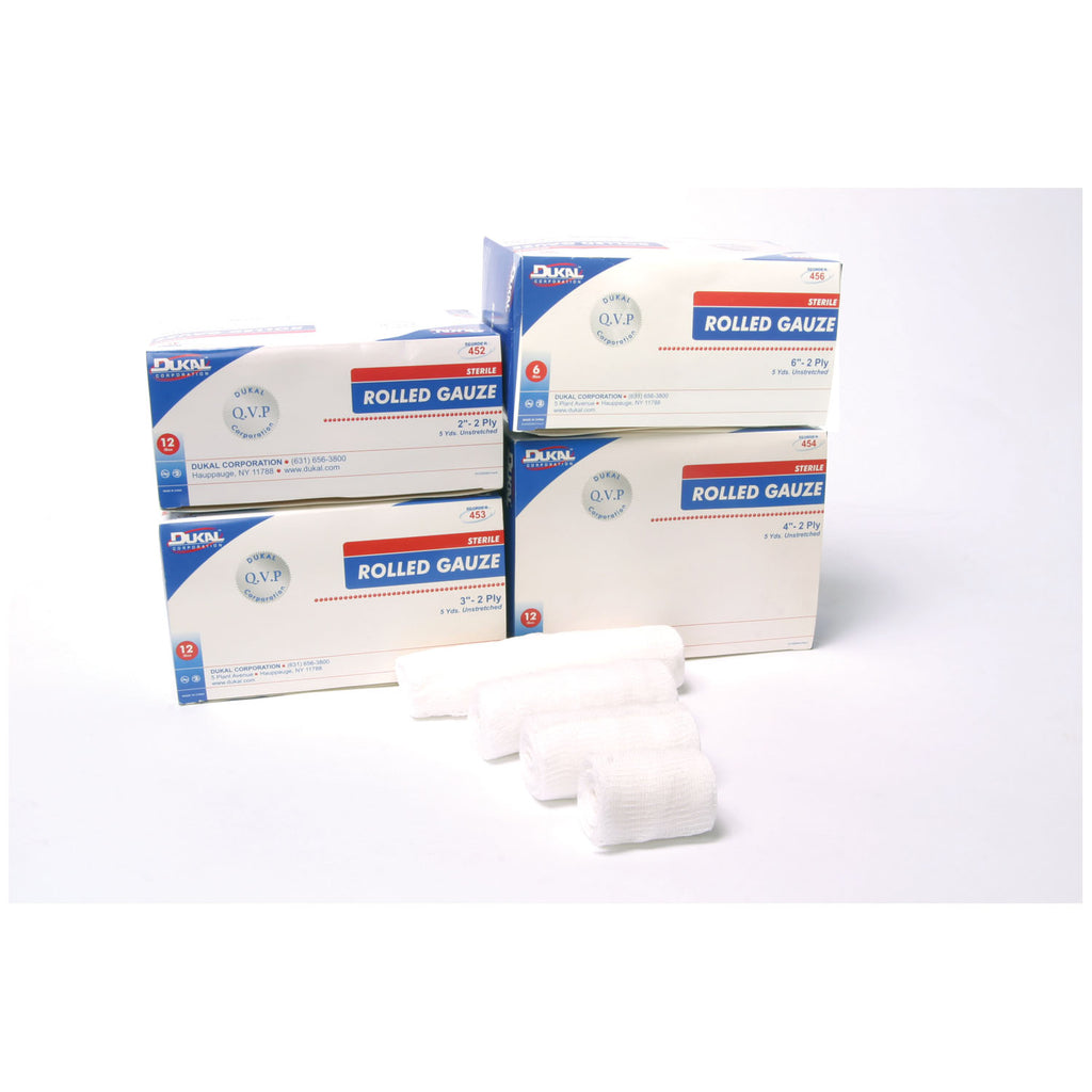 Rolled Gauze, 2\" x 5 yd, Sterile, 2-Ply, 1/pouch, 12 pouch/bg, 8 bg/cs