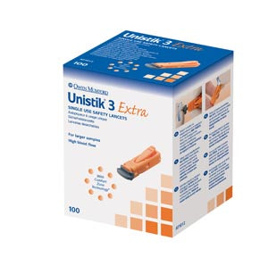 Lancet, Extra, 21G, 2.0mm Penetration Depth, Orange, 100/bx (US & Canada Only)