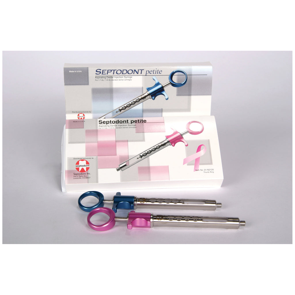 Product Description: Designed for dentists and hygienists with smaller hands. Its compact design provides a smaller thumb ring, finger grip and shorter plunger length. This provides better control and added comfort when aspirating.