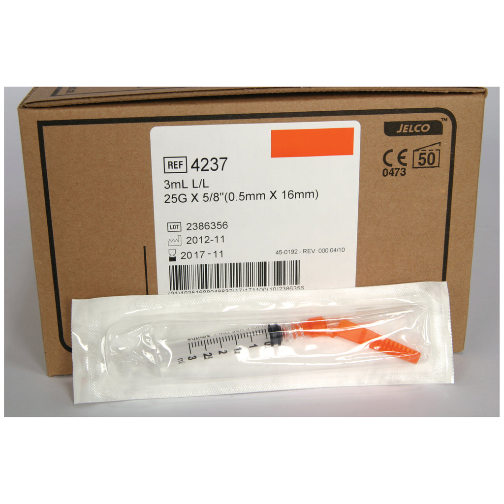 Needle, Safety, Hypodermic, 25G x 5/8\", 3ml Luer Lock Syringe, Hub Color Black, 50/bx, 8 bx/cs (US Only)