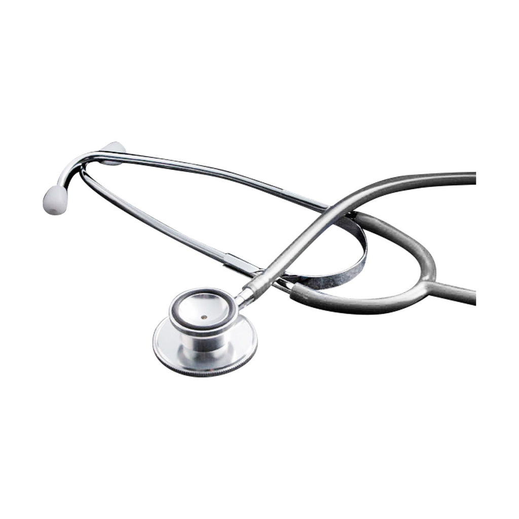 Product Description: Tech-Med's basic Dual Head stethoscope. This stethoscope features an anodized aluminum chest piece and a chrome plated brass binaural.