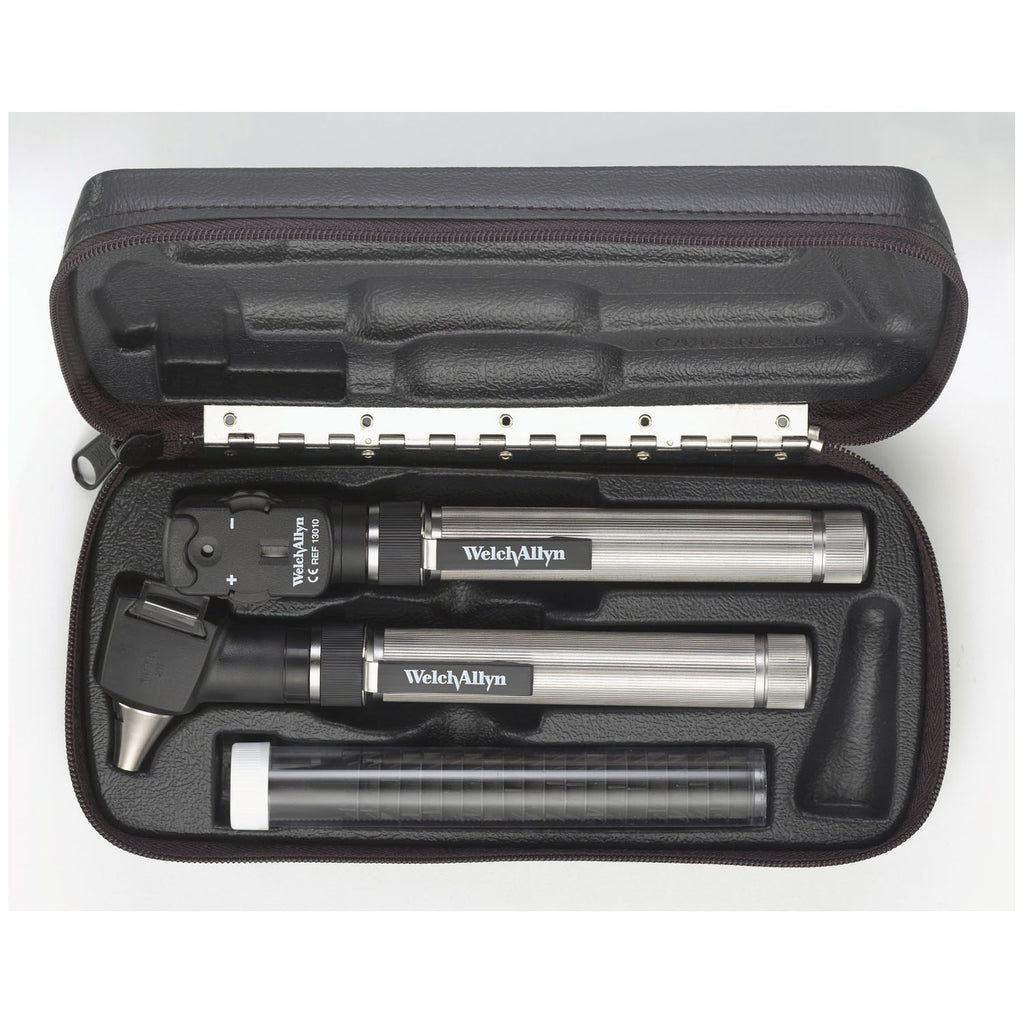 Product Description: Set includes PocketScope Ophthalmoscope and Otoscope along with a PocketScope AA alkaline battery handle for each instrument. Delivers performance in a slightly smaller package with slightly less light than the larger, full-size diagnostic instruments. Halogen illumination provides bright, white light for true tissue color rendition.